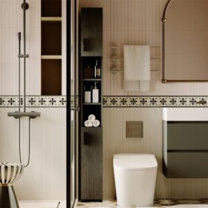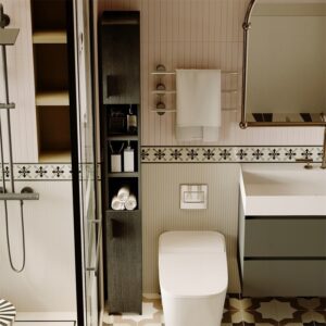 Kúpeľňová stojaca skrinka, čierna loftová skrinka, polica, vysoká úzka stĺpová skrinka