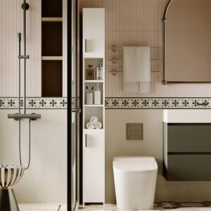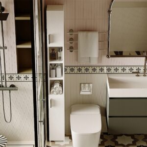 Kúpeľňová stojaca skrinka, biela loft, skrinka, polica, vysoká úzka stĺpová skrinka