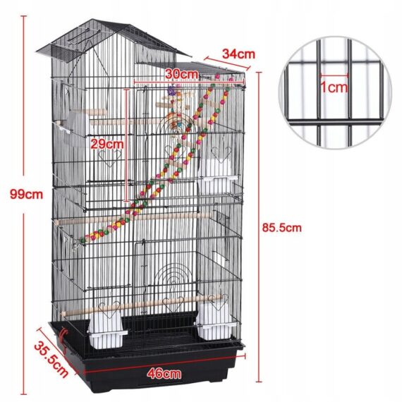 Veľká a pevná voliérová klietka určená pre papagáje, kanáriky a iné exotické vtáky. Poskytuje pohodlný priestor pre denné aktivity, odpočinok a hru. Ideálna pre domácnosť aj chov.