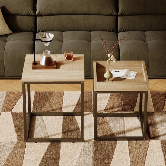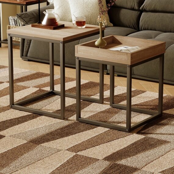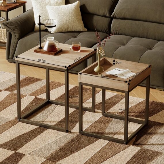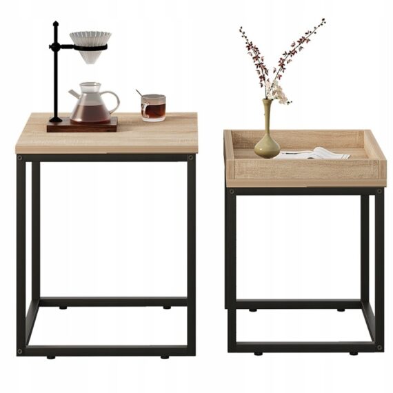 Táto moderná a funkčná sada dvoch konferenčných stolíkov v loftovom/industriálnom štýle je perfektným riešením do obývačky, pracovne alebo kancelárie. Praktický dizajn 2 v 1 umožňuje zasunúť menší stôl pod väčší, čím sa ušetrí miesto a prispôsobí sa rozloženie vašim potrebám.