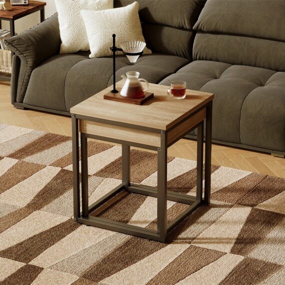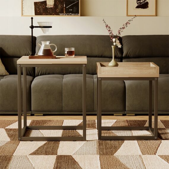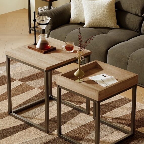 Konferenčný stolík 2 v 1 – Sada stolov v loftovom/industriálnom štýle – Svetlohnedá