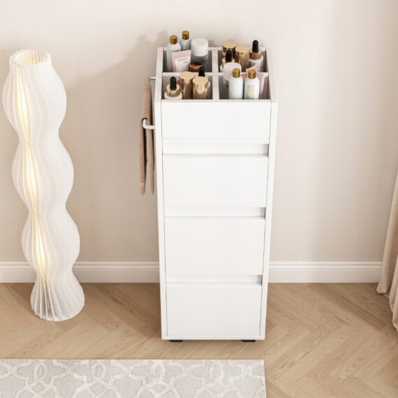 Biela kúpeľňová skrinka so zásuvkami