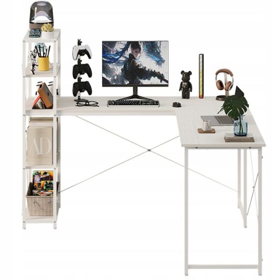 Tento moderný rohový stôl v priemyselnom štýle je ideálnym riešením na štúdium, prácu a hranie hier. Jeho premyslený dizajn s policami a knižnicou vám umožňuje maximálne využiť priestor a poskytuje pohodlné miesto pre váš počítač, knihy a školské potreby. Vďaka jasnej bielej farbe sa tento kus nábytku skvele hodí do moderných a mladistvých interiérov.