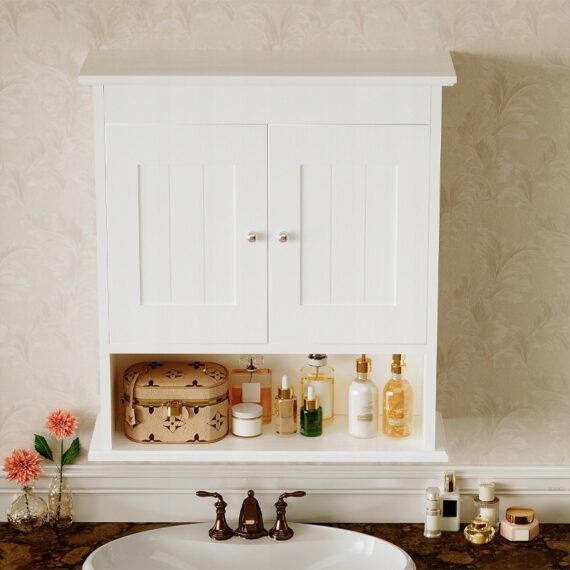 Biela 2-dverová nástenná kúpeľňová skrinka, škandinávsky štýl, nástenné police, loft
