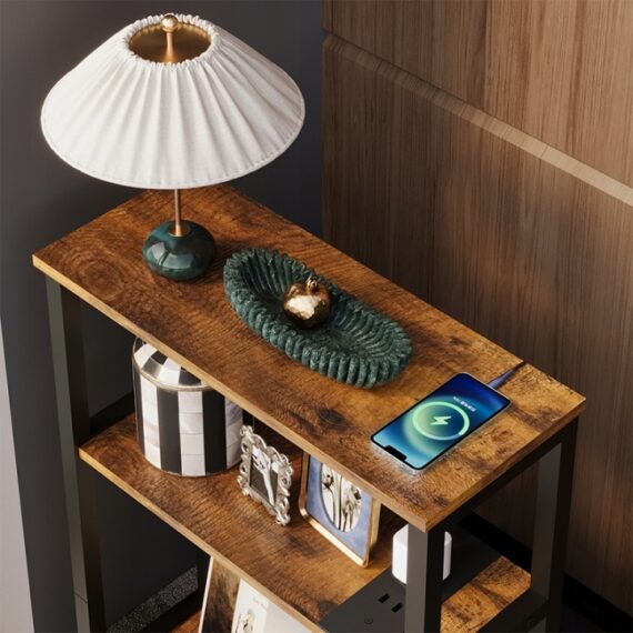 Knižnica/loftová polica do obývačky s USB portom – hnedá, funkčná a priestranná
