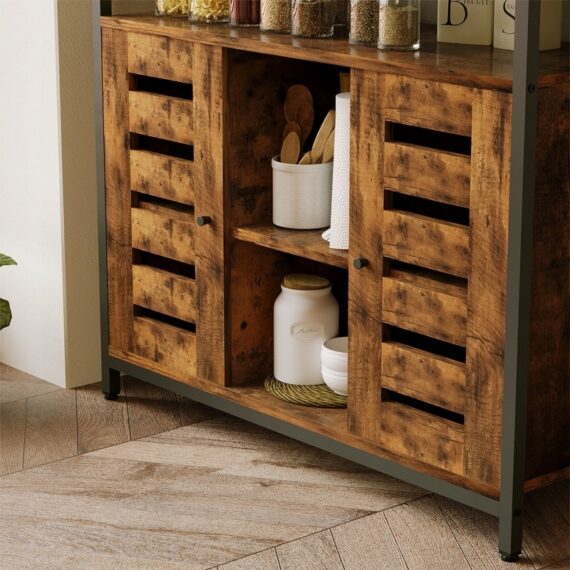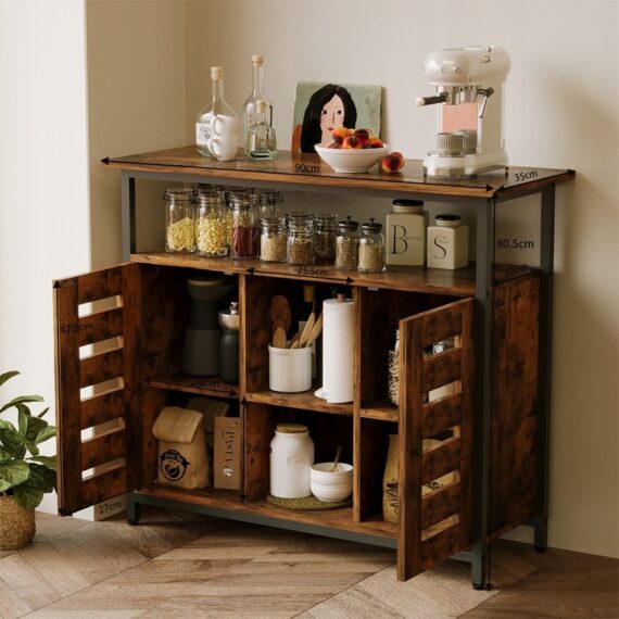 Funkčná a štýlová komoda v štýle loft je perfektnou kombináciou praktického úložného priestoru a industriálneho dizajnu. Hnedé telo v kombinácii s jednoduchým tvarom sa perfektne hodí do kuchyne, obývacej izby a jedálne.