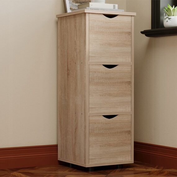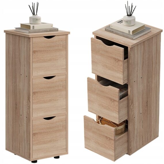 Táto štýlová a funkčná rustikálna dubová skriňa je ideálnym riešením do vašej obývačky, spálne, kúpeľne alebo predsiene. Vďaka úzkemu dizajnu ju môžete umiestniť aj do obmedzených priestorov, pričom priestranné zásuvky poskytujú pohodlné úložné priestory.