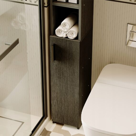 Štýlová a praktická kúpeľňová stĺpová skrinka v modernom loftovom štýle.