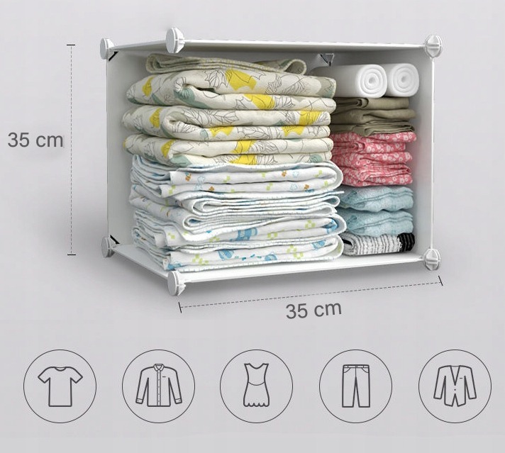 Šatníková skriňa má kovový rám s plastovými spojmi. Veľmi ľahko a rýchlo sa zostavuje a skladá – zloží sa za niekoľko minút. Dobre sa osvedčí aj v prípade, že ste preč alebo často meníte miesto pobytu.