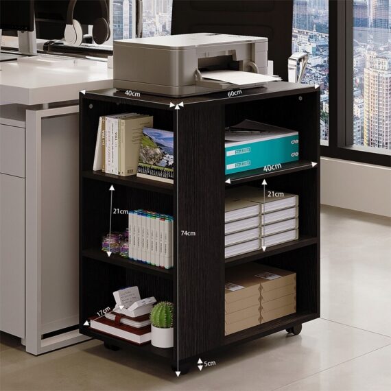 Multifunkčný stolík pod tlačiaren, regál na kolieskach, polica, skrinka, čierny