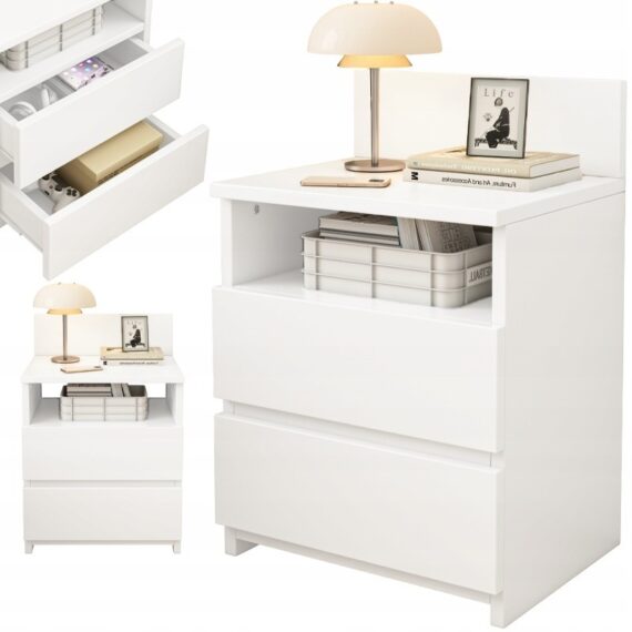 Nočný stolík komoda do spálne 2 zásuvky biela podkrovie moderné 40cm