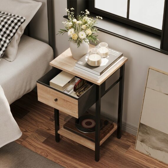 Nočný stolík / komoda / skrinka so zásuvkou a policou – svetlo hnedá, loft, industriálny
