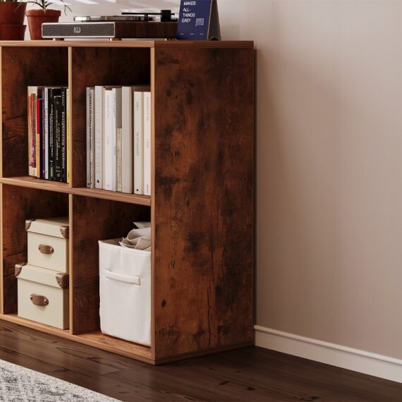 Táto funkčná otvorená knižnica v tvare kocky 3×2 je praktickým riešením na ukladanie a vystavovanie. Vďaka svojej kompaktnej forme sa hodí do obývacej izby, kancelárie, pracovne aj izby teenagerov. Rustikálny štýl dodáva interiéru moderný a industriálny charakter.