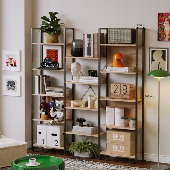 Priemyselná stojaca knižnica v štýle loft – svetlo hnedá – 166 cm