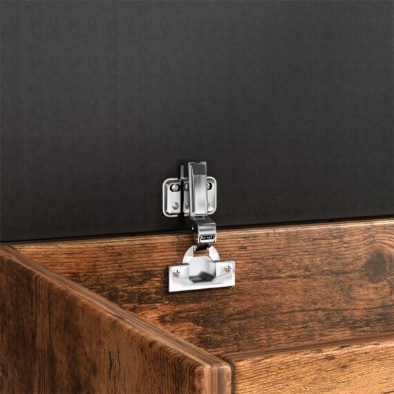 Skrinka sa vyznačuje teplým, svetlohnedým odtieňom starnúceho dreva (vyrobeného z odolnej MDF), ktorý krásne kontrastuje s matným čiernym kovovým rámom. Industriálne vyhotovenie robí zo skrinky nielen praktický kus nábytku, ale aj výraznú dekoráciu interiéru.