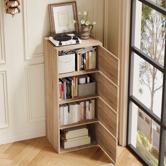Stĺpová skriňa s dvierkami, svetlý dub Sonoma, priestranná stojaca komoda, loftový štýl, 120 cm