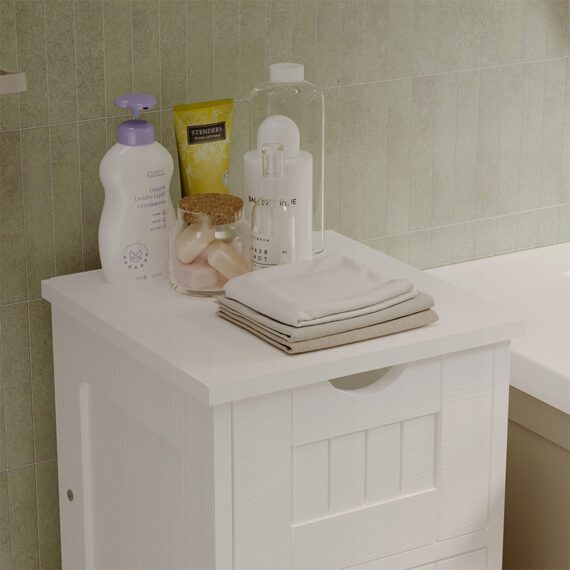 Úzka kúpeľňová skrinka – Biela polica so zásuvkami – Škandinávska polica